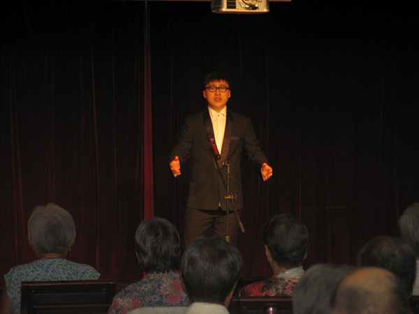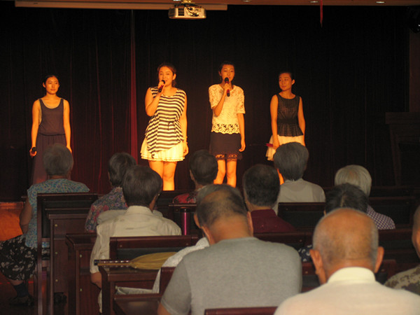 下午3点,一首《春天的故事》拉开了本次演出的序幕,舞蹈《梦》更是让大家感受到了东方古典舞姿带来的别样美感;一曲葫芦丝独奏《月光下的凤尾竹》,使老人们感受到了轻松和舒适;《父亲》这首歌让整场演出进入了高潮,那动人的声音和触动心弦的歌词更是让在座的人潸然泪下,感慨万千;当《让我们荡起双桨》的音乐响起时,老人们仿佛忆起了年轻时候的美好时光,此刻他们就像孩子一般快乐;《浏阳河》是毛主席家乡的母亲河,这首歌让老人们想起了伟大领袖毛主席,他像太阳一样,是他指引着人民前进的方向;《洪湖水浪打浪》让老人们想起了洪湖这片革命的热土,曾经孕育了数不清的革命传奇与光荣壮举;接着一首《夕阳红》是希望在座的各位老人及天下老人都能度过一个幸福的晚年;最后,一曲《相亲相爱》又一次将本场演出推向高潮。